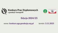 Stowarzyszenie Geodetów Polskich oraz Główny Geodeta Kraju ogłaszają kolejną edycję Konkursu na najlepsze prace dyplomowe z zakresu geodezji i kartografii. Celem Konkursu jest wyróżnienie najlepszych prac dyplomowych wykonywanych w ramach studiów stacjonarnych oraz niestacjonarnych z zakresu geodezji i kartografii na polskich uczelniach publicznych i niepublicznych, charakteryzujących się najwyższym poziomem naukowym, potencjałem praktycznym oraz oryginalnością rozwiązania.